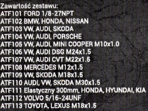 ZESTAW ADAPTERÓW DO WYMIANY OLEJU W AUTOMACIE