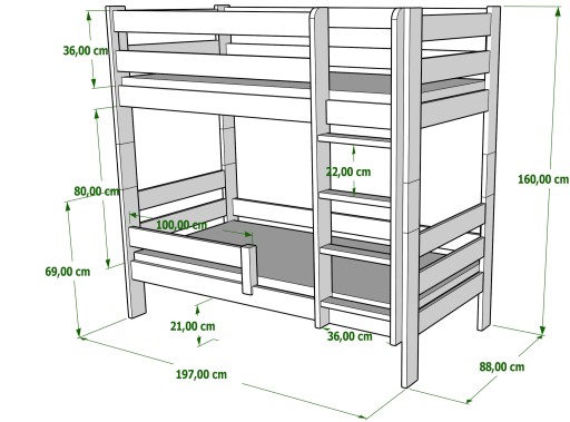 GAGATEK to łóżko piętrowe, w całości wykonane z wysokiej jakości drewna sosnowego. Idealnie sprawdzi się w pokoju rodzeństwa, gdy trzeba optymalnie wykorzystać przestrzeń, którą dzielą nasze pociechy. Ochronne, drewniane barierki zabezpieczają przed upadkiem, a po drabince z płaskimi szczebelkami, dzieci wspinają się bezpiecznie i wygodnie. Istnieje również możliwość użytkowania GAGATKA w wersji dwóch, niezależnych od siebie łóżeczek. Łóżko, można wielokrotnie składać i rozkładać, bez uszczerbku na jego wytrzymałości i estetyce.