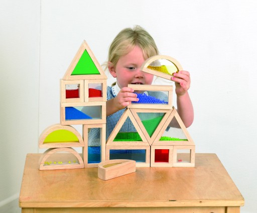 Ruchome wnętrze klocków sensorycznych pobudza ciekawość dzieci i rozwija w nich zmysł obserwacji. Dodatkowo klocki dostarczają interesujących wrażeń wizualnych oraz dźwiękowych.