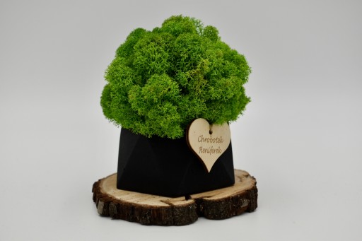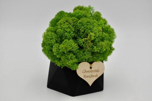 Czy wiesz, że dekoracje z mchu są całkowicie bez obsługowe? Nie wymagają przycinania, podlewania ani nawożenia. Chrobotek jest doskonałą rośliną dla alergików- ma działania antystatyczne ( nie przyciąga kurzu), oczyszcza powietrze, sprawdzi się doskonale również w pomieszczeniach bez okien. Swoją popularność mech chrobotek reniferowy zawdzięcza proekologicznym trendom.
