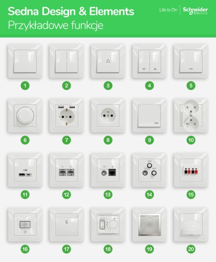 Sedna Design & Elements to nowa seria innowacyjnych łączników i gniazd o wyrafinowanej estetyce. W swojej ofercie posiada inteligentne rozwiązania, które zdecydowanie zwiększą Twój komfort oraz zapewnią bezpieczeństwo. Są to m.in. urządzenia do sterowania oświetleniem, żaluzjami, temperaturą.