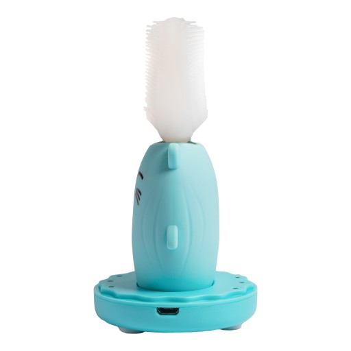 - Delikatna silikonowa główka szczoteczki z mikro włókienkami zapewniająca dokładne mycie i dotarcie do wszystkich zakamarków uzębienia malucha, dbająca zarazem o dziąsła i podniebienie