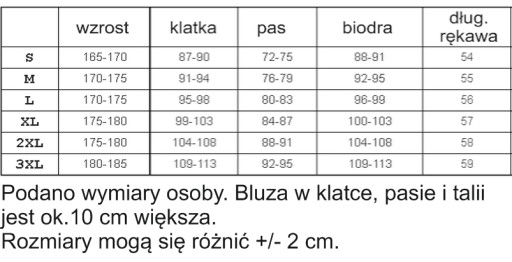 Tabela rozmiarów: