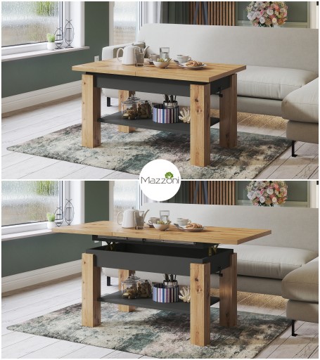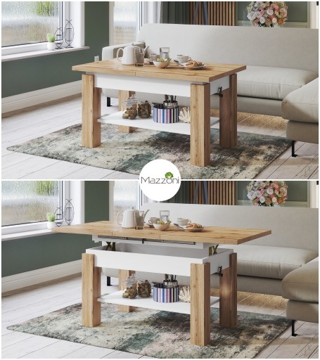 WAŻNE: Wkładka powiększająca znajduje się w specjalnym "schowku" pod blatem, dzięki czemu przy rozkładaniu ławy zawsze jest pod ręką i nie trzeba przechowywać jej osobno.