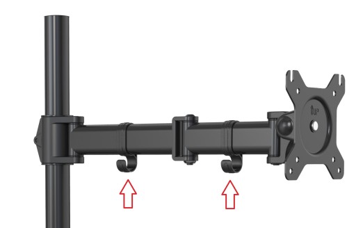 Uchwyt posiada trzy zaczepy przez które można poprowadzić kable np. HDMI, DVI ,VGA czy zasilający
