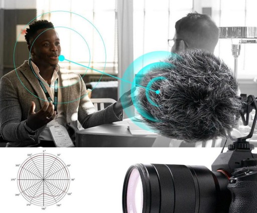 Nakamerowy mikrofon kardioidalny z antywstrząsowym mocowaniem i osłoną przeciwwietrzną. Mikrofon ten oferuje redukcję szumów poniżej 10 dB i zwiększona ochronę przed zakłóceniami.