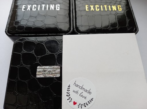 Zestaw spinek do mankietów koszuli wykonany przez Manufakturę Exciting. Spinki zostały wykonane z metalu szlachetnego i pomalowane ręcznie kolorową emalią. Spinki zostały zapakowane w ekskluzywne etui z wzorem skóry węża. Każdy zestaw tej serii ma nadany swój unikatowy numer umieszczony na certyfikacie oryginalności z hologramem na spodzie pudełka.