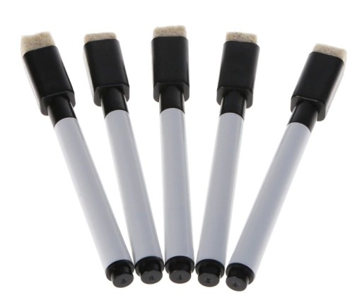 Każdy marker jest wyposażony w gąbkę do zmazywania dzięki czemu możesz natychmiast wymazać to co napisałeś oraz magnes dla łatwego przyczepienia do tablicy.