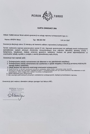 ( na papierze od firmy która robiła regenerację ) dodatkowo daje gwarancję rozruchową