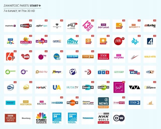 - pakiet START HD - 74 kanały w tym 30 HD