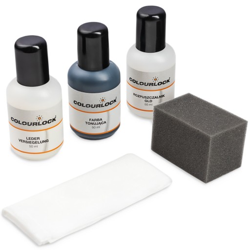 Uniwersalny zestaw renowacyjny do skór w kolorze BMW SCHWARZ z farbą tonującą Colourlock o pojemności 50ml.