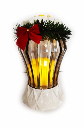 Nowoczesny Lampion GLAMOUR 2.1 BIAŁY ZE ŚWIĄTECZNYM STROIKIEM
