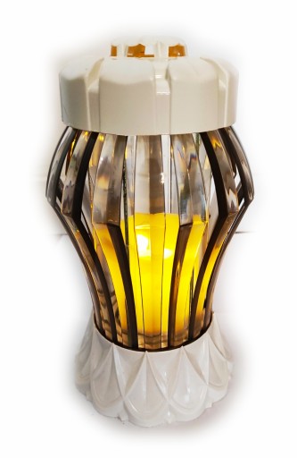 Ozdobne pasy zrobione są z elastycznego tworzywa dzięki czemu znicz jest bardziej odporny na uszkodzenia. W środku znajduje się szklany słój.
