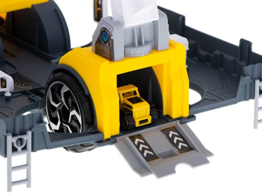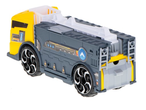 Super multifunkcyjne auto-ciężarówka na dużych kołach w kolorze żółtym, będzie świetnym prezentem dla małego fana motoryzacji. Konstrukcja pojazdu oraz dołączone do zestawu samochodziki wraz z pozostałymi elementami sprawiają, że można go wykorzystać w zabawie na wiele sposobów, między innymi jako garaż, lawetę, podnośnik. Posiada otwierane klapy z przodu i z tyłu przez które mogą wyjeżdżać samochody. Otwierają się także boki, które po rozłożeniu i służą jako parking dla autek i do których można zamontować dołączone w zestawie elementy. Podnośnik z koszem jest ruchomy. Całość została wykonana z plastiku z dbałością o szczegóły. W zestawie znajdują się także naklejki, którymi można dodatkowo ozdobić tira i jego wnętrze nadając mu jeszcze bardziej realistyczny wygląd.