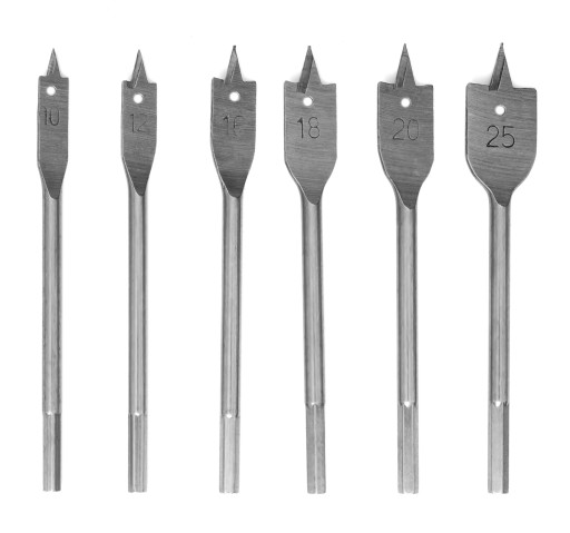 Wiertła płaskie piórkowe do drewna 10-25 mm, zestaw 6 sztuk