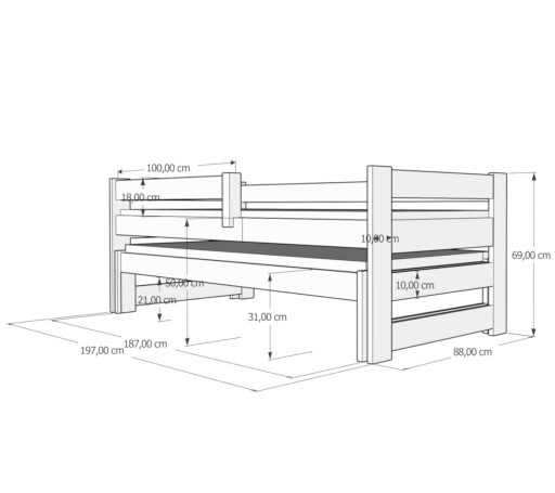 Model PAWEŁEK DUO w całości wykonany jest z wysokiej jakości drewna sosnowego. Jest to łóżko dwupoziomowe, które może być złożone w ciągu dnia, co zwiększa powierzchnię dzienną pokoju i komfort jego użytkowania. Rozłożone na noc, zapewnia dodatkowe miejsce do spania i sprawdza się, zarówno w przypadku dwójki dzieci dzielących wspólny pokój jak i wtedy, gdy chcemy, na przykład poczytać z dzieckiem książkę do snu.