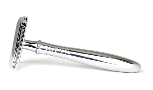 Tradycyjna maszynka do golenia na żyletki z długą rączka na stojaku MAG-3.1