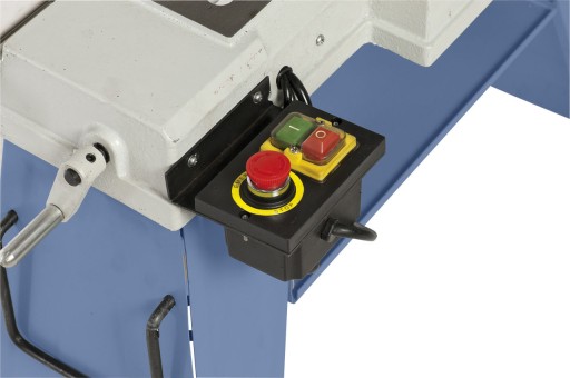 - Włącznik i wyłącznik przecinarki umiejscowiony w wygodnym miejscu. Razem z wyłącznikiem bezpieczeństwa, który spełnia wymogi dyrektyw UE. (bez niego, albo gdy jest wyłączniki z klapką, urządzenie nie ma prawa pracować na terytorium UE.