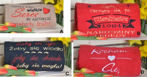 Do wyboru szeroki wybór kolorów ręczników oraz nici.