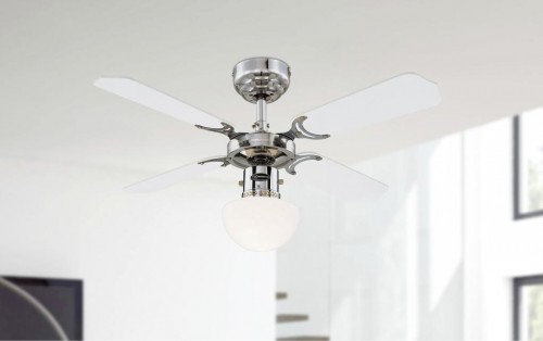 LAMPA WENTYLATOR SUFITOWY NA 4 ŁOPATKI ORAZ 1 KLOSZ