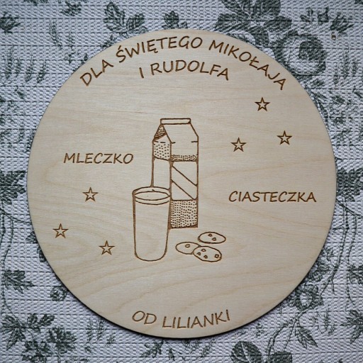 Drewniany talerzyk dla Świętego Mikołaj - grawer dowolnego imienia/imion dziecka