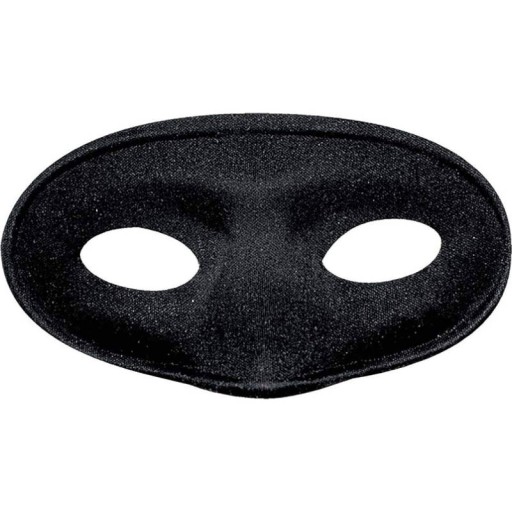 Maska wykonana z czarnego materiału. Podszyta od wewnątrz drugą warstwą czarnego materiału. W masce wycięte są otwory na oczy. Mocowana na gumce.