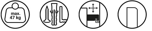Mebel dostarczany w postaci zdemontowanej, w kartonowych paczkach. Szybki i łatwy montaż według załączonej instrukcji. Zestaw zawiera komplet kołków do powieszenia na ścianie.
