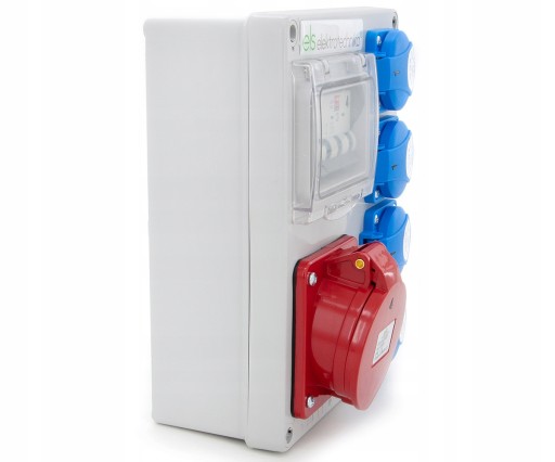 ✅ 1 x gniazdo siłowe skośne z niklowanymi stykami 32A 5P 400V IP44, w pełni okablowane i zabezpieczone C32 3P.
