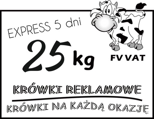 oferujemy Państwu 25 KG przepysznych KRÓWEK REKLAMOWYCH z dowolnym nadrukiem wyprodukowanych specjalnie pod Państwa zamówienie w trybie EXPRESS z gwarancją wysyłki zamówienia w ciągu 7 DNI ROBOCZYCH liczonym od momentu dostarczenia lub akceptacji projektu etykiety cukierka.