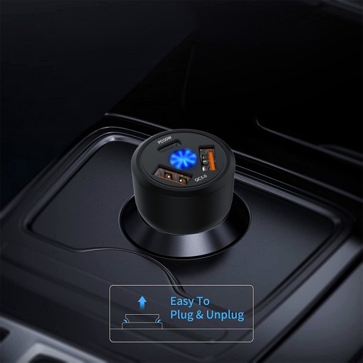 Ładowarka samochodowa jest świetnym akcesorium, które idealnie sprawdzi się jako dodatek do funkcjonalności w Twoim samochodzie. Wyposażona w dwa porty USB oraz port Typu-C, osiągających moc 66W szybko naładuje Twoje rozładowane urządzenie, nie jedno a 3 w tym samym momencie. Wyposażona w inteligentne chipy automatycznie zidentyfikuje podłączone urządzenie i dopasuje odpowiednią moc i natężenie prądu. Ładowarka dzięki temu zapewni szybkie oraz bezpieczne ładowanie urządzenia i jego baterii.