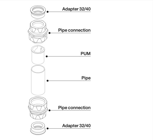 - Wymiary przyłącza - Ø32 lub Ø40 mm