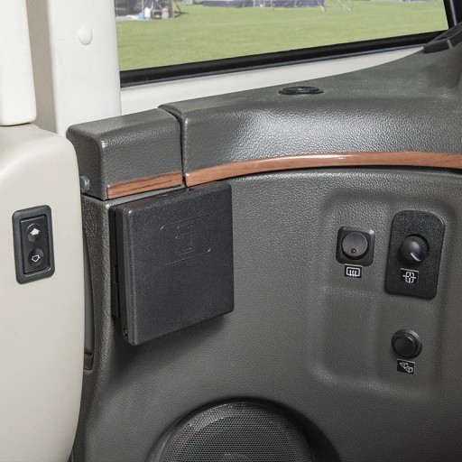 Ten uchwyt na kubek jest niezwykle praktyczny, ponieważ po użyciu można go ponownie złożyć, aby nie przeszkadzał. Można przymocować do drzwi, kokpitu itp. w niezwykle oszczędzający miejsce sposób. Idealny również do przestrzeni pasażerskiej z tyłu i do minibusów.