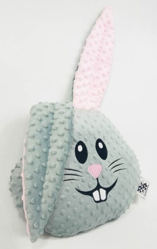 Poduszka Zajączek uszyta z polaru minky wysokiej jakości. Tkanina jest bardzo przyjemna w dotyku, dzieci uwielbiają się do niej przytulać. Poduszka może posłużyć jako przytulanka lub jako dekoracja w pokoju. To doskonały pomysł na prezent dla każdego i na każdą okazję.