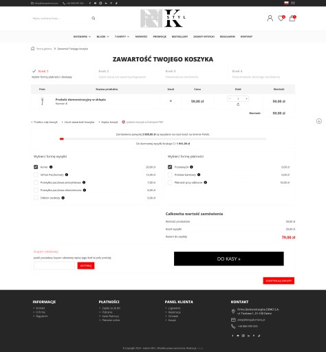 - dostępne różne formy płatności elektronicznych – wystarczy mieć podpisaną umowę operatorem i włączyć moduł w sklepie,