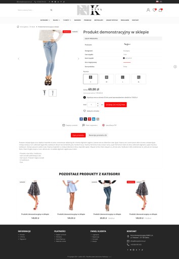 - listowanie wszystkich produktów oraz definiowanie filtrów zawężających wyniki (wg cech, dodatkowych pól, dostępności produktów, czasu wysyłki, producenta, kategorii),