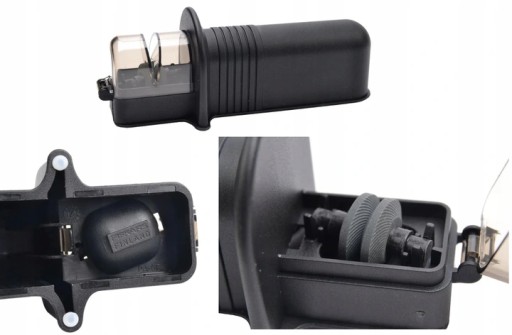 Nóż ostrzy się szybko i lekko dzięki zastosowaniu ceramicznej szpulki na ośce.