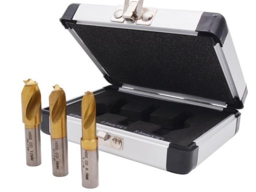Wiertła koronowe do zgrzein punktowych HSS - Zestaw w pudełku: 6.5 mm, 8.0 mm, 10.0 mm