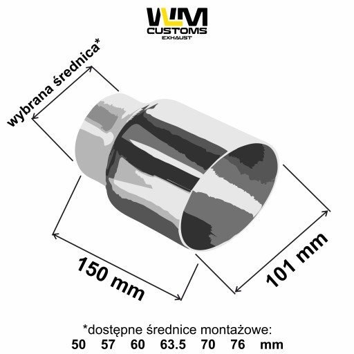 - Średnica zewnętrzna (montażowa): 50; 57; 60; 63.5; 70; 76 mm