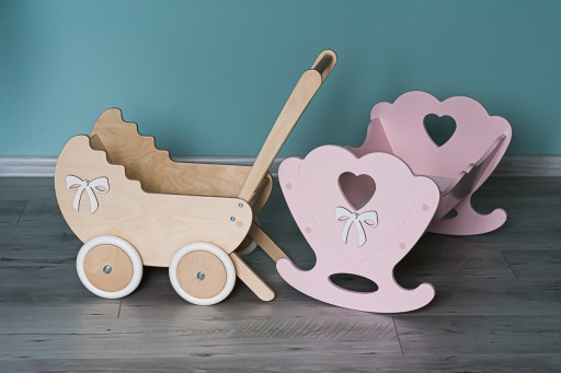 Nasze zabawki nie tylko bawią, ale także uczą i pobudzają kreatywność dziecka, Bawiąc się kołyską każda młoda Dama może stać się troskliwą mamą opiekującą się ulubionymi lalkami i misiami.