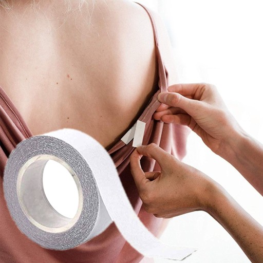 Taśma nadaje się też do delikatnego sklejenia ze sobą dwóch tkanin, np. możesz przylepić opadającą bluzkę do ramiączka stanika