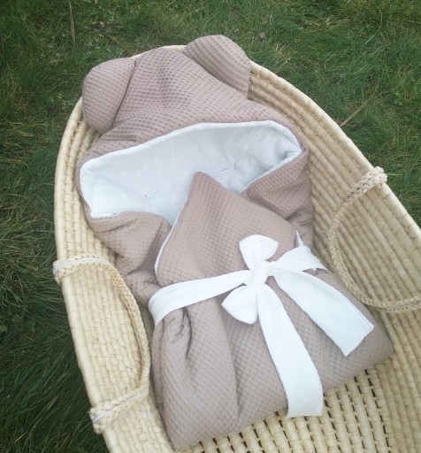 - miękki, cieplutki kocyk z kapturkiem idealnie pasuje do nosidełka lub fotelika samochodowego. Doskonały na jesienną i zimową porę. Kocyki idealnie pełnią funkcję otulacza. wiązane kokardą, co zapewnia dziecku poczucie ciepła oraz izoluje od wiatru i mrozu.