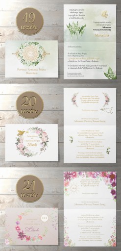 ZAPROSZENIA NA KOMUNIĘ STYL BOHO - 20 wzorów zaproszeń.