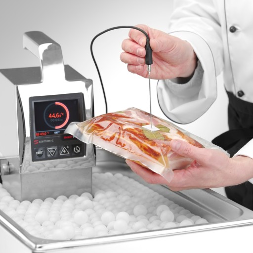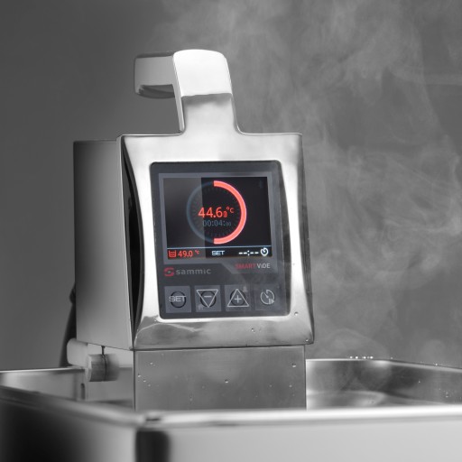 Urządzenie do gotowania próżniowego marki Sammic sprawdzi się w szczególności w restauracjach specjalizujących się w kuchni molekularnej. Umożliwi gotowanie rozmaitych potraw metodą sous vide w dowolnym naczyniu o pojemności nawet 56 l np. w pojemniku gastronomicznym GN 2/1. Zaletą oferowanego modelu jest możliwość jego obsługi przy pomocy aplikacji dostępnej na smartfony z systemem IOS i Android.