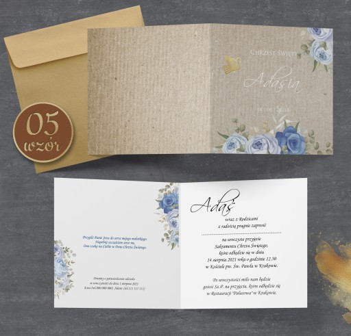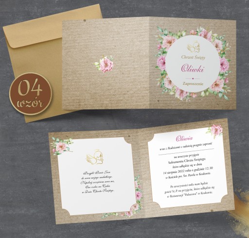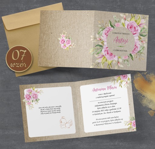 ZAPROSZENIA NA CHRZEST STYL RUSTYKALNY - 7 wzorów zaproszeń.