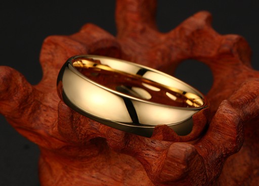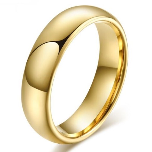 Klasyczna obrączka wykonana w całości z wysokiej jakości węgliku wolframu, powlekana w kolorze złotym trwałą metodą IP. Wewnętrzna jak i zewnętrzna powierzchnia obrączki posiada błyszczące wykończenie, o wysokim połysku. Produkt ma profil zaokrąglony, środek soczewkowy z wygrawerowanym napisem "Tungsten carbide", zaprojektowany w taki sposób, by zwiększyć komfort jego użytkowania. Taki styl produktu idealnie wpasuje się dla osób ceniących sobie subtelna elegancję i klasykę. Wykonany z niezwykłą starannością o detale z najwyższej jakości materiałów. Obrączka stanowi też pomysł na idealny prezent.