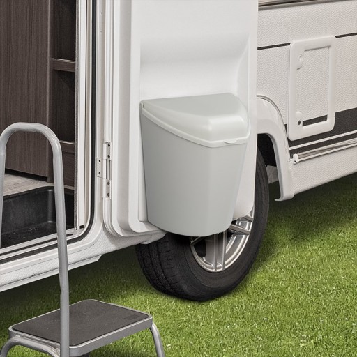 - praktyczny kosz na śmieci tam gdzie tego potrzebujesz w przyczepie kempingowej, kamperze, na łodzi, lub po prostu w domu lub garażu