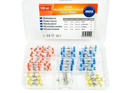 ZESTAW ZŁĄCZEK TERMOKURCZLIWYCH Z CYNĄ ORAZ KLEJEM 150 szt