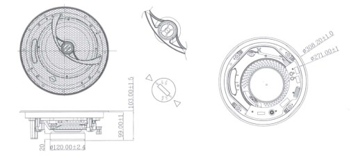 W celu zamontowania głośników należy wywiercić dwa otwory o średnicy 271mm i połączyć oba głośniki dołączonym kablem głośnikowym do wzmacniacza. Niezbędna głębokość do zabudowy głośnika to 103mm.