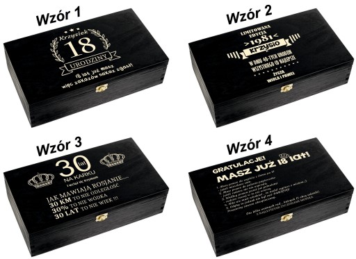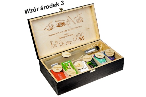 - Personalizowane życzenia w środku skrzynki według wybranego wzoru.