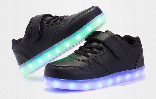 Świecące buty led, 7 kolorów podświetlenia i 4 tryby świecenia przełączane jednym guzikiem.